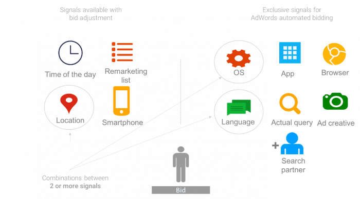 Automated bid strategies, sometimes referred to as Smart bidding, use advanced machine learning algorithms to modify bids to each individual auction. These take numerous factors into account, including time of day, device, location, remarketing lists and more, to ensure bids are tailored to each search query.Automated bid strategies currently include:- Target CPA – ideal for advertisers with a strict cost per acquisition target