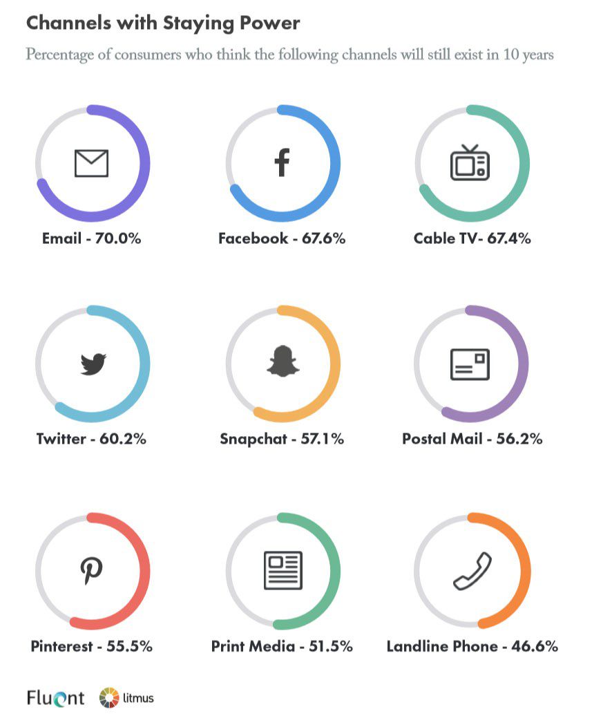 As you can see from the infographic below, 70% of people believe that email will still be relevant in 10 years, which was more than every other channel in the survey! The younger generation are the biggest advocates for the survival of email, which is a great sign of its longevity.