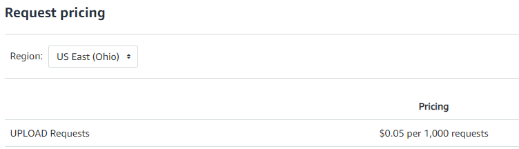 We can see that IA storage is 3,125 times more expensive then Glacier so the breakeven point would be roughly 60TB for which the IA storage cost would be $750 and glacier storage cost $240. If we consider the client actually only stored 1TB of data (file size around 100 KB), we can see that the cost savings of storage is $8 with the request cost being $514.23 totalling a net loss of $506.32 monthly!!!