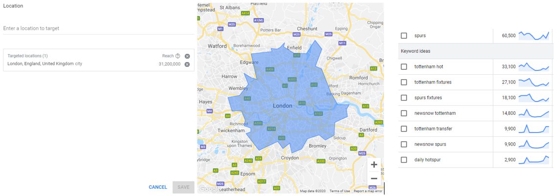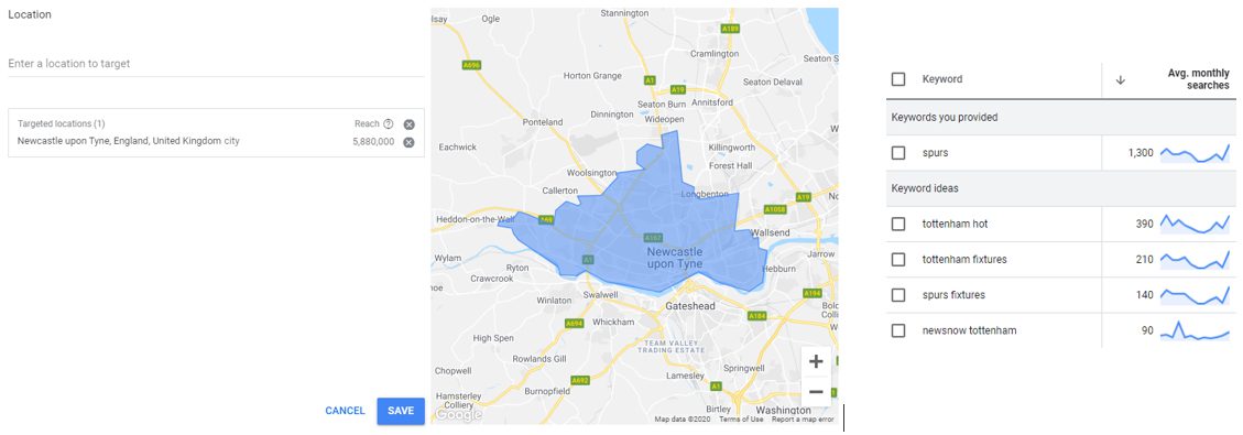 We can’t expect everything to be popular, regardless of where we are looking. There will be some products and services which simply are not applicable to every region of the world. Some things are obvious in this respect, such as trying to sell a big winter coat to people living on the equator. But others will require a little more digging to determine if what you are trying to achieve is, in fact, achievable in the region from which you are operating. For example, a quick comparison in keyword planner shows how the search volume for ‘Spurs’ differs between London and Newcastle.