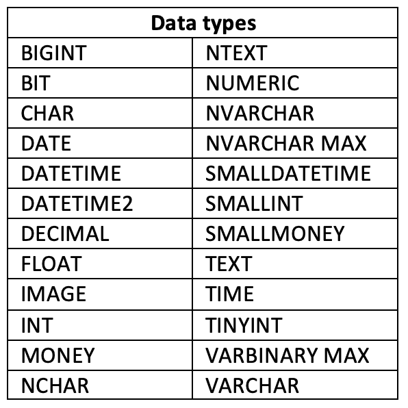 Data types listed in the table below support column encryption: