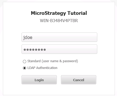And that’s it! Now we can use John Doe’s LDAP credentials to login into MicroStrategy. To try that out, open MicroStrategy Web (or Developer) and type in your domain (Active Directory) credentials. In our case that is jdoe, along with domain password.