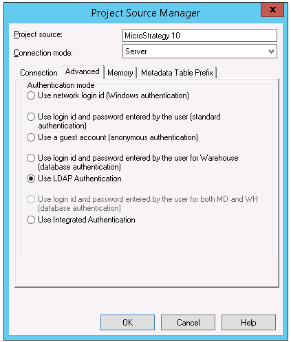 To do that for MicroStrategy Developer users, right click project source, then Modify Project Source, and finally choose Advanced card. Pick Use LDAP Authentication radio button.