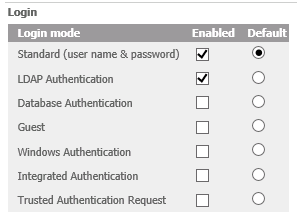 - User cannot use standard authentication to logon: check this box if you want only LDAP authentication as a login option for users. If you leave it unchecked, users will have an option to login with both standard authentication and LDAP authentication.