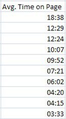 Exporting time on site, time on page to excel in the old interface was a real pain. It would come out in seconds. This isn’t particularly helpful, and requires further processing to get it into a nice customer friendly format.