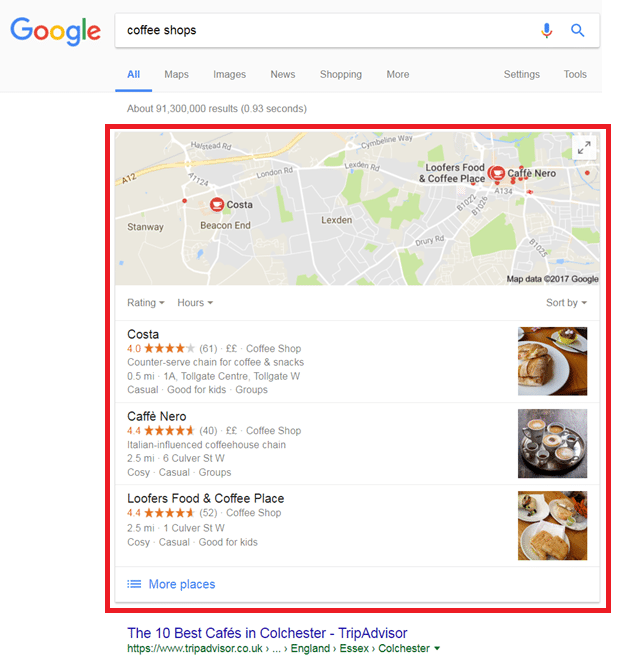 Moving away from digital marketing examples for a second, long gone are the days when I’d search for coffee shops colchester. Now I just search for coffee shops and expect Google to do the rest.