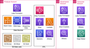 - Lake Formation – Governance Admins are given access to the Gold Buckets in all Data Producer Accounts. Admins can use Lake Formation Tags to secure the data and then share it with consumers.