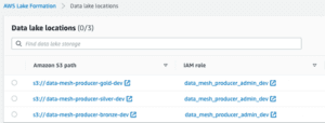 When setting up your Data Mesh you are going to become very familiar with S3 access errors. Simplify the process of sharing data, by ensuring all Data Products live in the Gold Bucket of each Producers Data Lake. Meaning the Governance Account only requires access to one bucket in each Producer account. See docs for details.