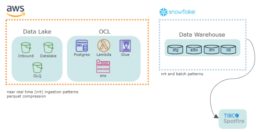 - Glue – for Snowflake data warehouse SQL ELT processing execution and workflows